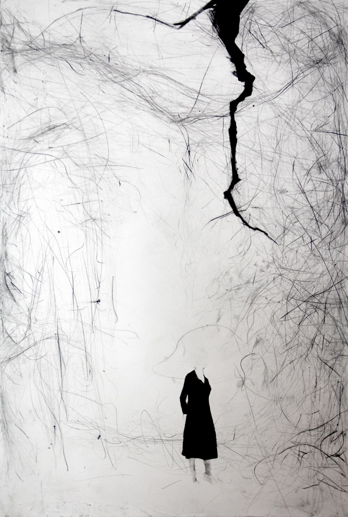 Löylynheittäjät, 95cm x 130cm_kuivaneula, carborundum, 2009