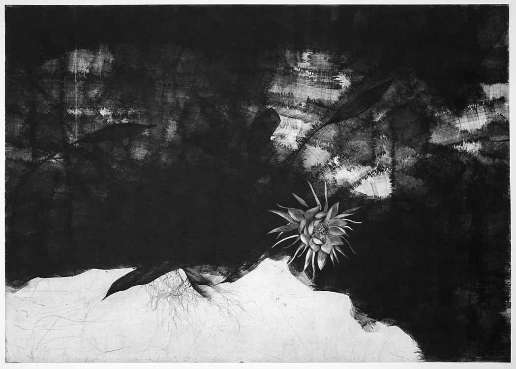The queen of the night, mezzotint, drypoint, 90cm x 125cm, 2014
